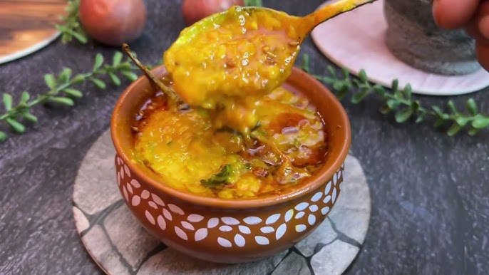 The foundation of this dish is perfectly cooked dal—soft, creamy, and well-blended.