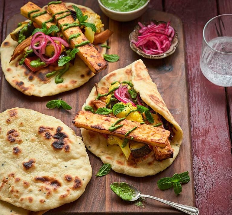 Mint mayo adds cool freshness and creaminess to balance the spicy paneer.