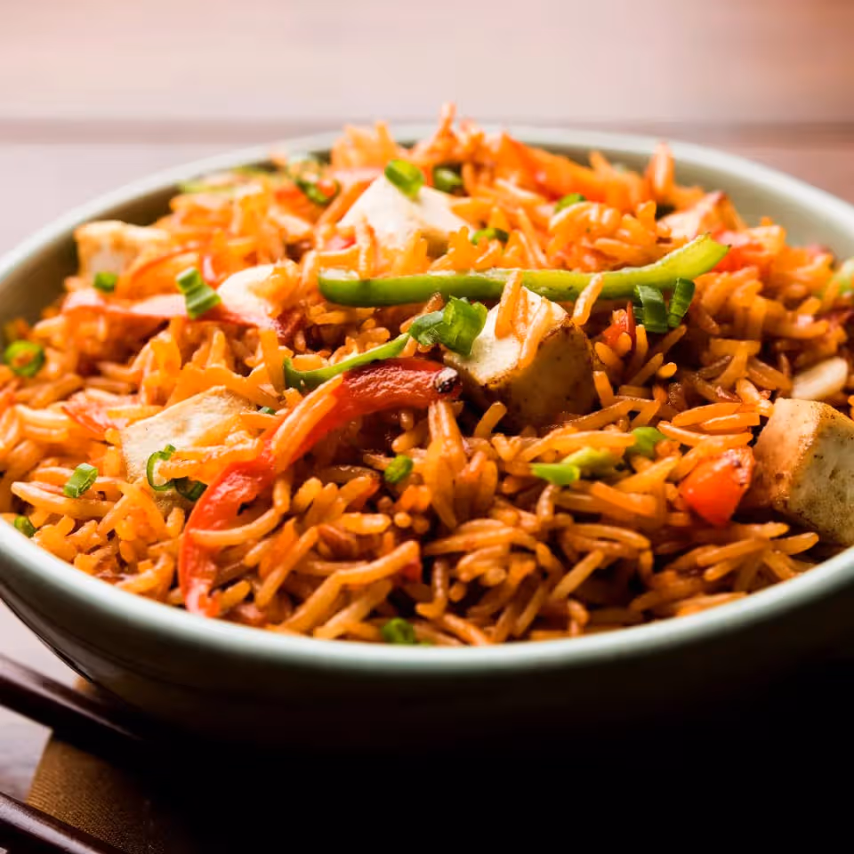 - Fusion-friendly: A mix of Indian flavors with Chinese-style stir-fried rice.