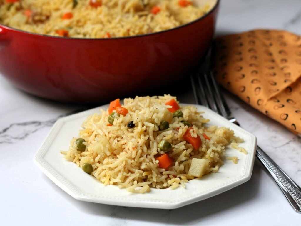 This vegetarian biryani recipe fits perfectly on a Thanksgiving table: