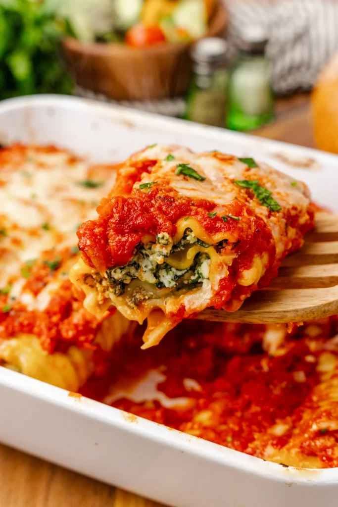 Once baked, let the lasagna rolls rest for about 5 minutes before serving. This allows the sauce to set slightly and makes serving easier.