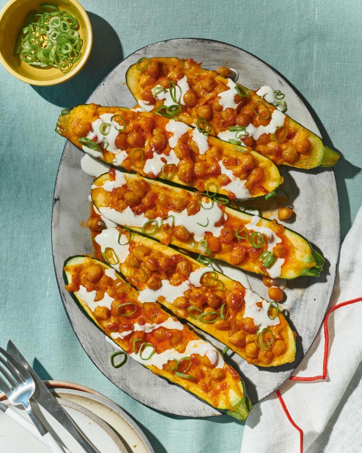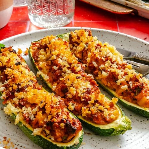 Zucchinis make the perfect base for stuffing — mild in flavor, sturdy enough to hold the filling, and tender when baked.