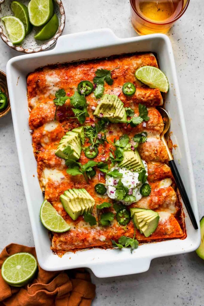 Once your enchiladas are baked and decorated, it’s time to dig in!