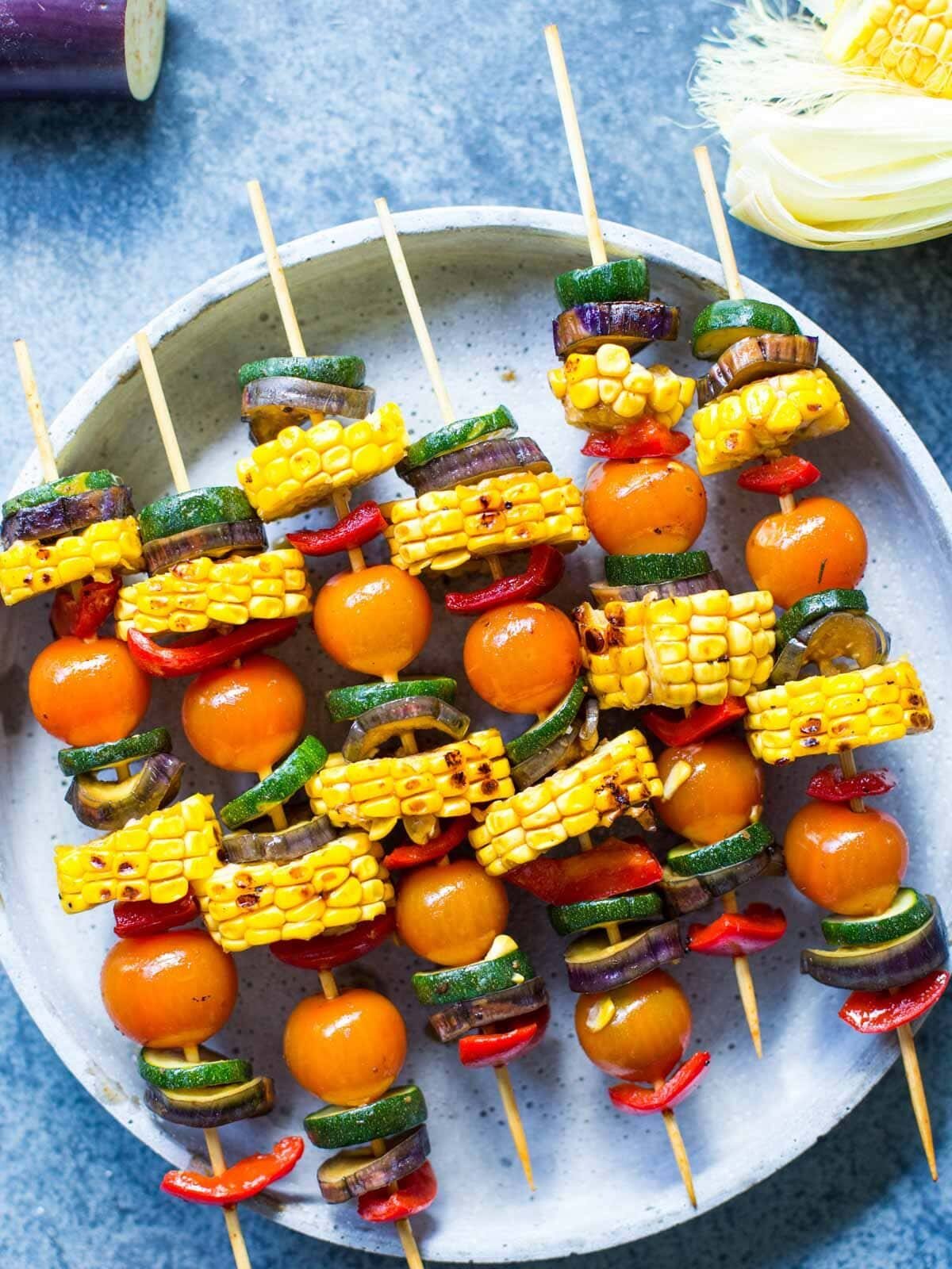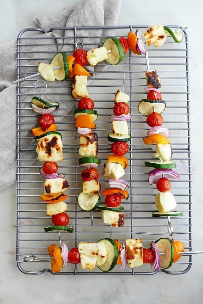 • Place the skewers and cook for 8–10 minutes, turning occasionally until veggies are tender and slightly charred.